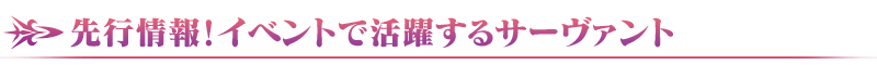 ※10月20日(水) 20:30追記 ※対象のサーヴァントとなっていても、本イベントのメインシナリオに登場しない場合があります。 ※10月13日(水) 18:00より、サーヴァント選択画面やサーヴァント強化画面などに、イベントボーナスフィルターが追加されております。イベントで活躍するサーヴァントのみを表示する便利な機能となりますので、こちらもあわせてご活用ください。