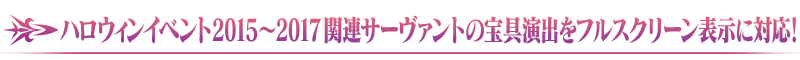 ハロウィンイベント2015~2017関連サーヴァントの宝具演出を、フルスクリーン表示に対応いたしました。