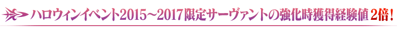 下記の期間中、期間限定イベント「ハロウィン・ライジング! ~砂塵の女王と暗黒の使徒~」関連サーヴァントの強化をおこなった際に、大成功(経験値2倍ボーナス)・極大成功(経験値3倍ボーナス)の発生率が期間限定で2倍になります!