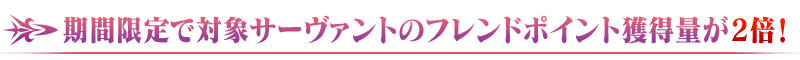 ※フレンドではないマスターもフレンドポイント獲得量2倍の対象となります。 ※ゲストサーヴァントの場合はフレンドポイント獲得量2倍の対象外となりますのでご注意ください。