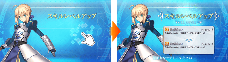 サーヴァントスキル強化画面から保有スキルを強化する際に表示される演出を、画面タッチでスキップできるように改修いたしました。 ※宝具レベルアップ、アペンドスキルレベルアップなどは今後のゲームアップデートで対応予定です。