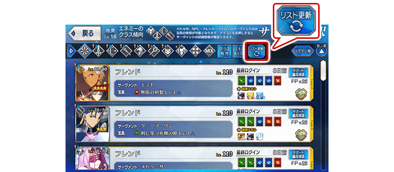 サポート選択画面の「リスト更新」ボタンのUIを調整