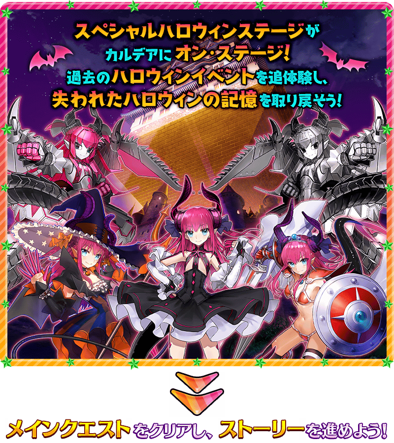 ハロウィンの出来事だけをきれいさっぱり忘れてしまったマスターを救うため、歴代のハロウィン会場をシミュレートしたスペシャルハロウィンステージがカルデアに登場!