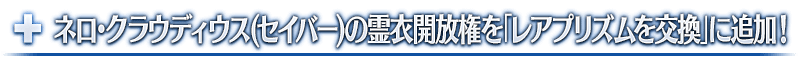 ※「★4(SR)ネロ・クラウディウス(セイバー)」を未所持の場合、霊衣開放権は入手可能となりますが、霊衣開放はおこなえませんのでご注意ください。