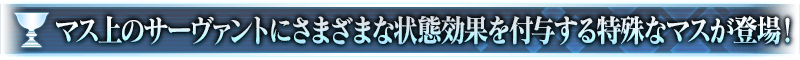 期間限定イベント「聖杯戦線 ~ブルータスよ、おまえもか~」より、マス上にいるサーヴァントにさまざまな状態効果を付与する特殊なマスが追加されました。