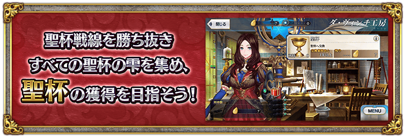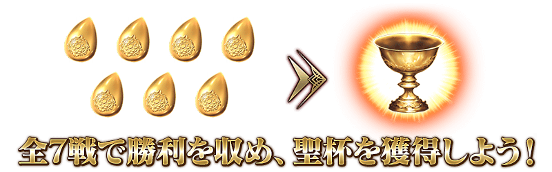 勝利することで聖杯の雫を1つ入手でき、7つ集めることで聖杯と交換可能になるので、すべての戦いを勝ち抜き、聖杯の獲得を目指しましょう!