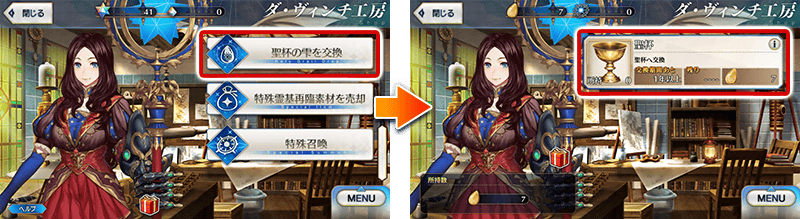 ダ・ヴィンチ工房に、新しく「聖杯の雫を交換」が追加されました!