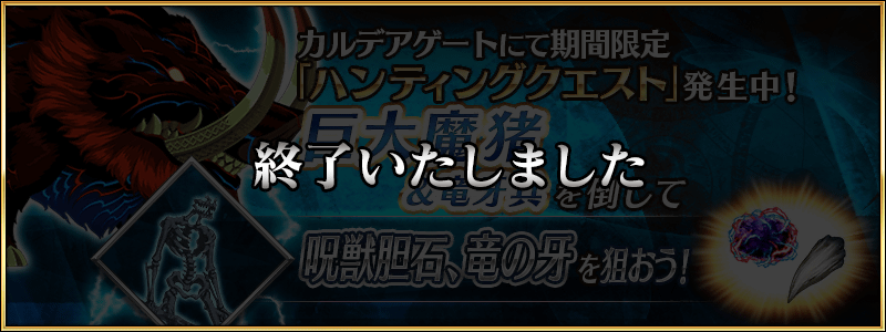 開催期間中、特定のエネミーを対象としたハンティングクエストが日替りでカルデアゲートに出現します。