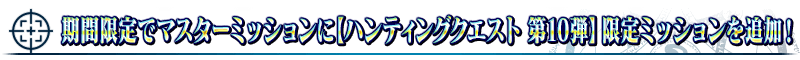 下記の期間中、「マスターミッション」の「限定」タブ内に期間限定で「【ハンティングクエスト 第10弾】限定ミッション」が追加されます。
