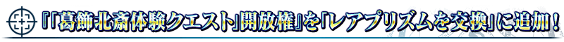 ※「レアプリズムを交換」に追加される『「葛飾北斎体験クエスト」開放権』は恒常となり、交換期限はありません。 ※「葛飾北斎体験クエスト」を1度クリアしている場合は、交換できませんのでご注意ください。
