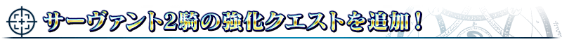 「★5(SSR)葛飾北斎(フォーリナー)」「★4(SR)望月千代女(アサシン・パライソ)」が強化される特別なクエスト「サーヴァント強化クエスト」が、カルデアゲートに恒常的に追加されます。