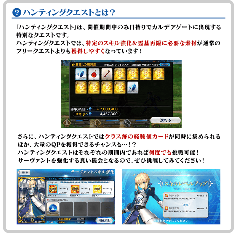 スキル強化&霊基再臨に必要な素材を、狙って獲得しやすいクエスト「ハンティングクエスト」開催!