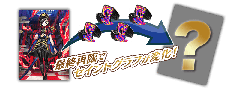 ミッション報酬で入手可能な「謎の物質RX」を使って、霊基再臨を4回繰り返すと、セイントグラフに変化が!