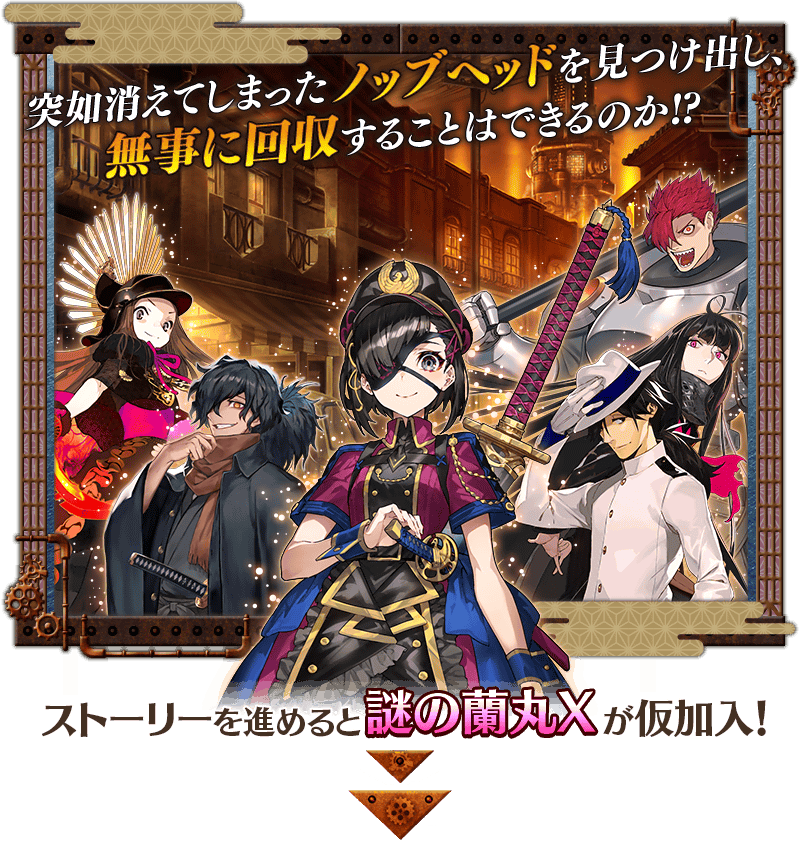 本イベントではメインクエストを進行すると、イベント限定サーヴァント「★4(SR)謎の蘭丸X」が期間限定で仮加入します。 メインクエストを進めて、「★4(SR)謎の蘭丸X」を正式加入させましょう!