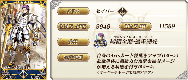 ※上記の「★4(SR)ランスロット(セイバー)」のセイントグラフは霊基再臨第2段階のものです。