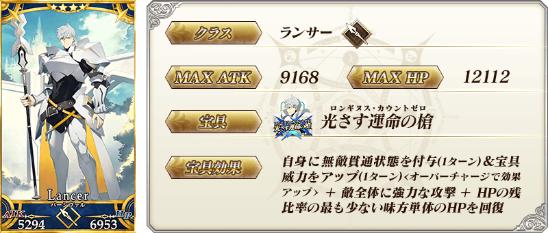 ※上記の「★4(SR)パーシヴァル」のセイントグラフは霊基再臨第2段階のものです。