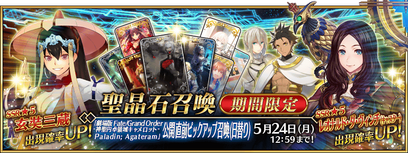 ■「劇場版 Fate/Grand Order -神聖円卓領域キャメロット- Paladin; Agateram」公開直前ピックアップ召喚(日替り)詳細情報