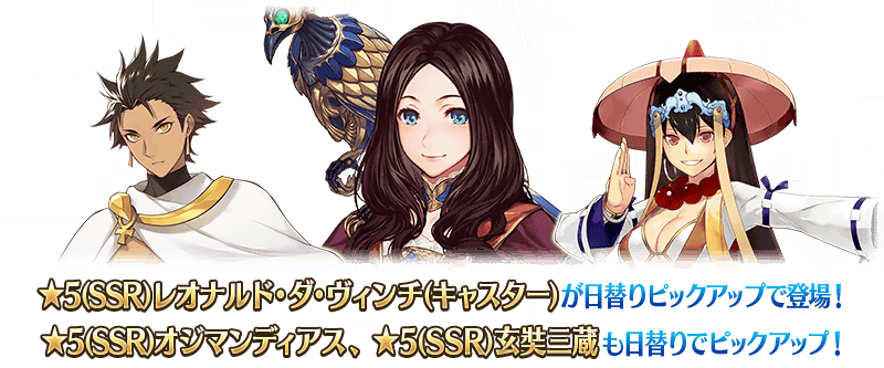 ★5 オジマンディアス ★5 玄奘三蔵 ★5 レオナルド・ダ・ヴィンチ(キャスター) | ||