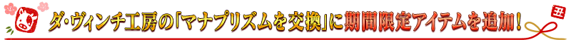 期間限定でダ・ヴィンチ工房の「レアプリズムを交換」に、下記のアイテムを追加いたします。
