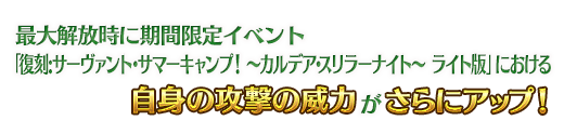 2020年に開催された期間限定イベント「サーヴァント・サマーキャンプ! ~カルデア・スリラーナイト~」で特定の報酬を獲得済みの場合、以下のように変化いたします。