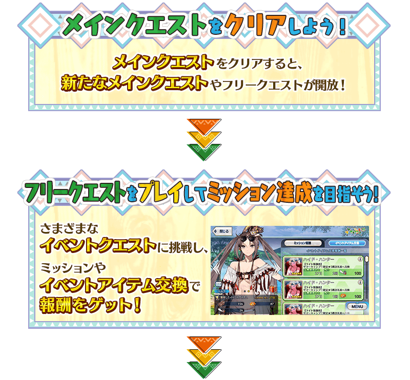 ミッションをクリアして、達成報酬を獲得しつつメインクエストを進めましょう!
