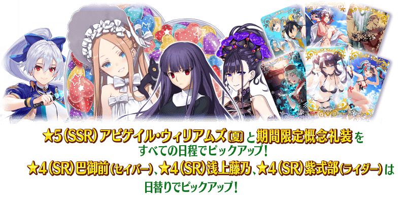 ※上記の「★5(SSR)アビゲイル・ウィリアムズ〔夏〕」のイラストは霊基再臨第3段階のものです。