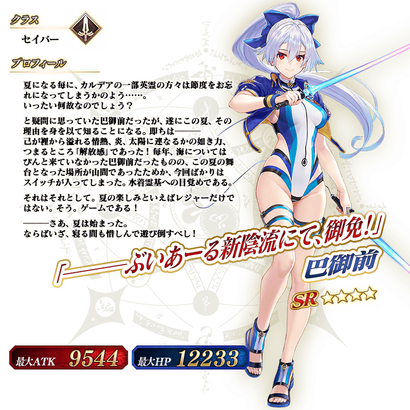 【日替りピックアップ】 ・★4(SR)巴御前(セイバー) ・★4(SR)浅上藤乃 ・★4(SR)紫式部(ライダー)