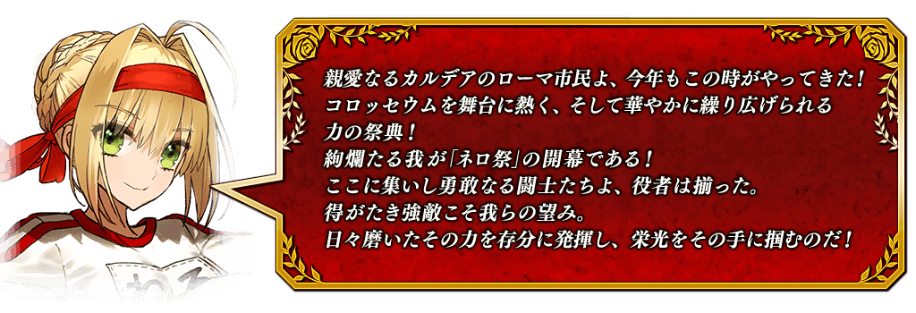本イベントは、2017年に開催された期間限定イベント「ネロ祭再び ~2017 Autumn~」を、遊びやすく一部を再調整した「復刻イベント」です。