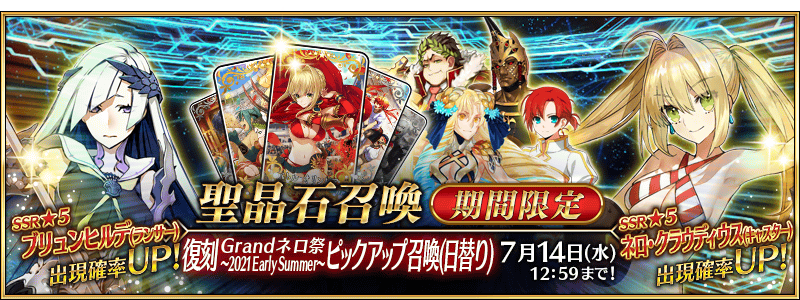 その他にも期間限定「復刻 Grandネロ祭 ~2021 Early Summer~ピックアップ召喚(日替り)」を同時開催!