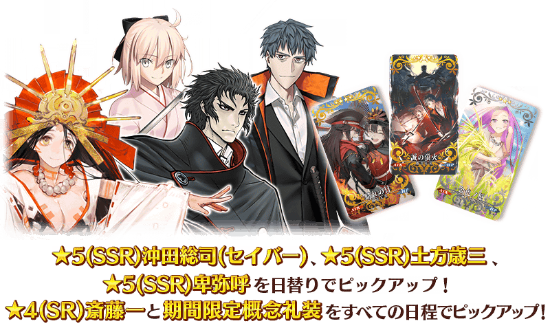 期間限定イベント「復刻:超古代新選組列伝 ぐだぐだ邪馬台国2020 ライト版」に関連するサーヴァントの中から4騎のサーヴァントと、期間限定概念礼装3種をピックアップ!