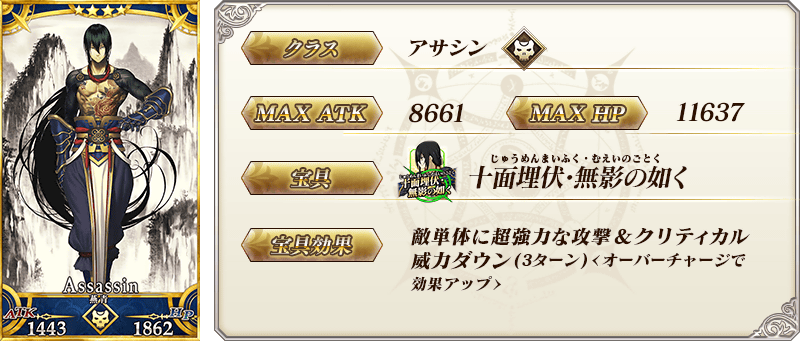 ★5 ジェームズ・モリアーティ(新宿のアーチャー) ★5 ヴラド三世(バーサーカー) ★4 ラーマ ★4 アルトリア・ペンドラゴン〔オルタ〕(ランサー) ★4 燕青(新宿のアサシン) |