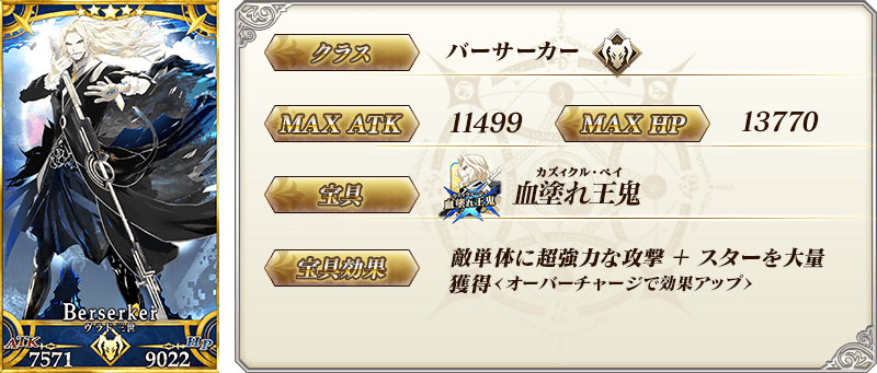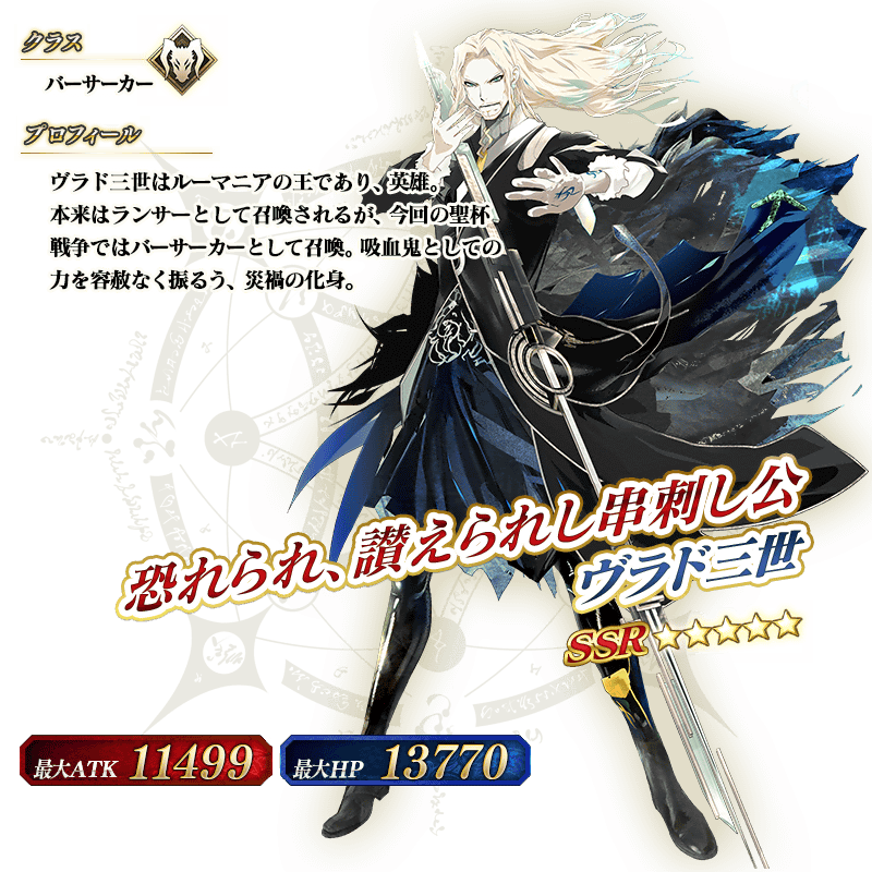 ※上記の「★5(SSR)ヴラド三世(バーサーカー)」のイラストは霊基再臨第2段階のものです。