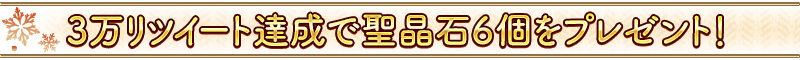 動画が配信されているツイートのリツイート数が、3万リツイートを達成すると、聖晶石6個をプレゼント!