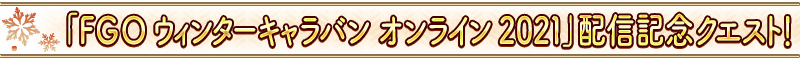 ※『「FGO ウィンターキャラバン オンライン 2021」配信記念クエスト』にアドベンチャーパートはありませんのでご注意ください。