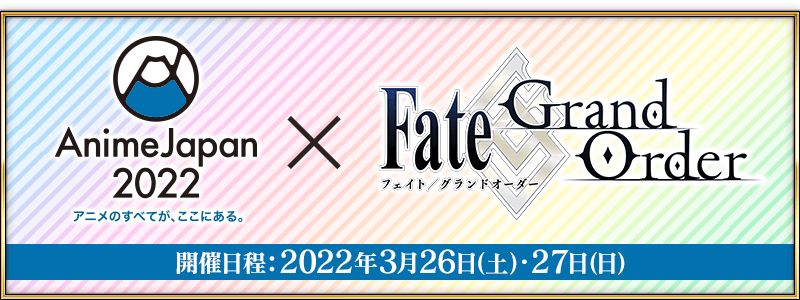 2022年3月26日(土)・27日(日)に東京ビックサイトにて開催される「AnimeJapan 2022」に「Fate/Grand Order」ブースが出展いたします。
