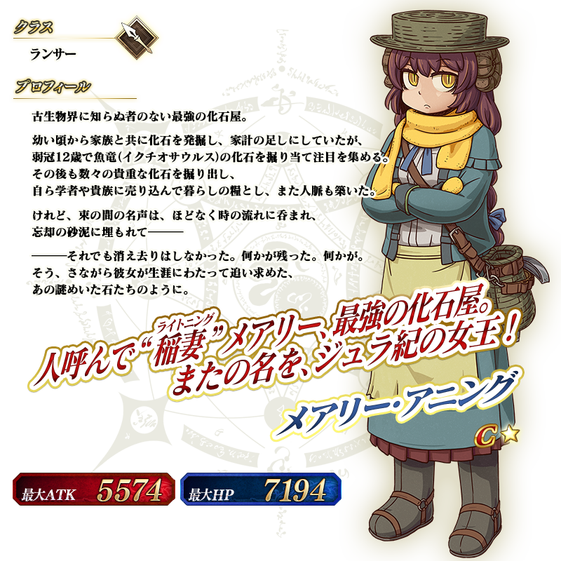 新規サーヴァント「★1(C)メアリー・アニング」や新たな概念礼装EXPカードが期間限定で登場いたします。