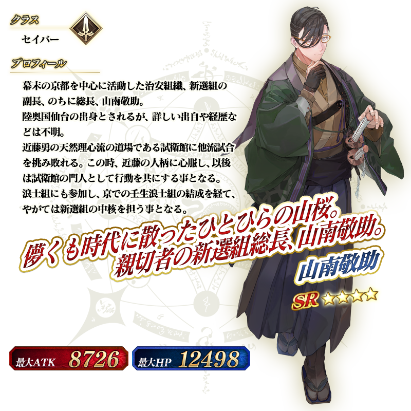 「★5(SSR)千利休」「★4(SR)山南敬助」が期間限定で新登場いたします。