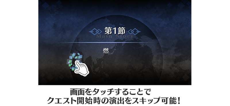 メインクエストは2回目以降、メインクエスト以外の幕間の物語やフリークエストなどは初回から演出をスキップすることが可能です。