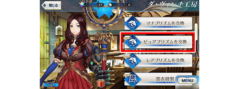 ※交換可能なアイテムには、メインクエスト第1部、亜種特異点Ⅰ~Ⅳ、第2部 第6章までを対象とした未クリアの章で獲得できる素材アイテム、各種ピース、モニュメント、輝石、魔石、秘石も含まれます。 ※期間限定のイベントアイテムを交換することはできません。 ※「ピュアプリズム」で交換できる数は、アイテムごとにそれぞれ100個までとなります。