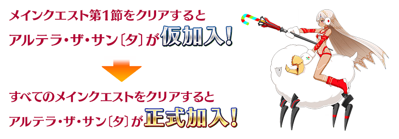 「★4(SR)アルテラ・ザ・サン〔タ〕」はメインクエストを最後までクリアすることで正式加入させることができます。