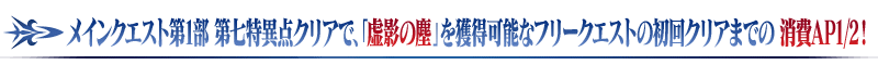 条件を満たしたマスターを対象に、スキル強化&霊基再臨素材「虚影の塵」を戦利品として獲得できる可能性があるフリークエストの初回クリアまでの消費APが期間限定で1/2になります!(バトルにおいて撤退した場合でも、同様の消費量になります)