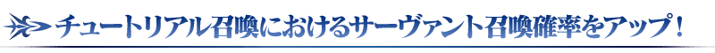 これからゲームを始められる方に向けて、ゲーム開始後のチュートリアル中におこなわれる聖晶石召喚において、サーヴァントの排出確率をアップいたしました!