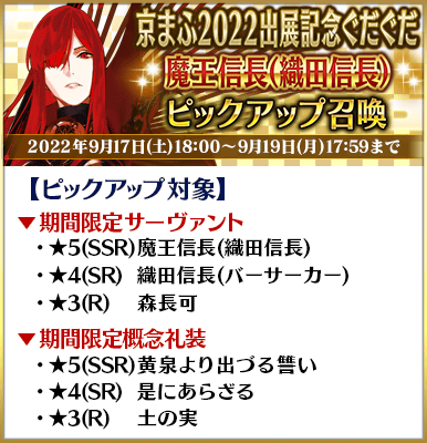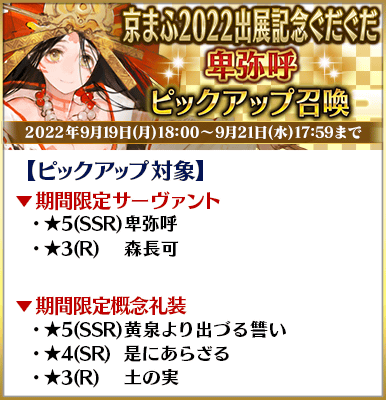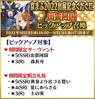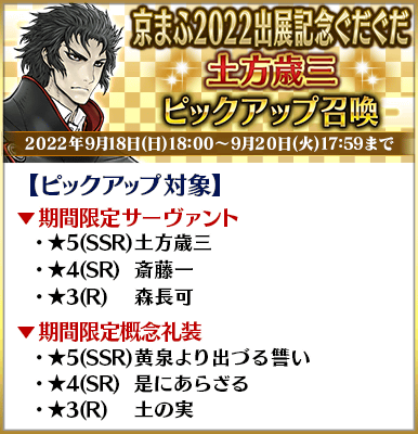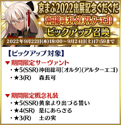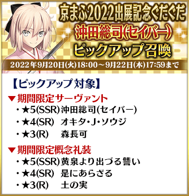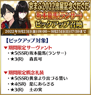 ◆「京まふ2022出展記念ぐだぐだピックアップ召喚」期間◆