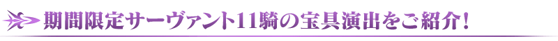 本召喚にてピックアップされている、サーヴァント11騎の宝具演出を紹介いたします!