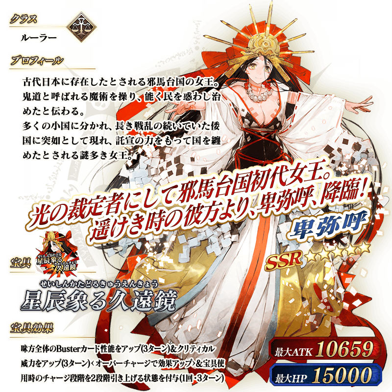 ※上記の「★5(SSR)卑弥呼」のイラストは霊基再臨第3段階のものです。