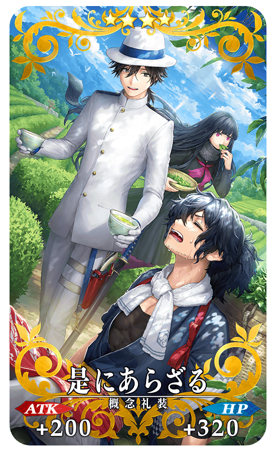 ピックアップ対象の期間限定概念礼装3種は、装備すると期間限定イベント「ぶっちぎり茶の湯バトル ぐだぐだ新邪馬台国 地獄から帰ってきた男」におけるイベントアイテムのドロップ獲得数がアップします。