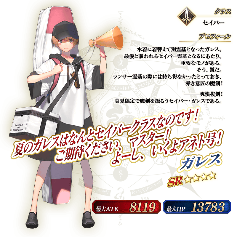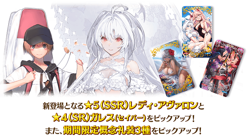 期間限定イベント「アークティック・サマーワールド! ~カルデア真夏の魔園観光~」の開催を記念して、新登場の期間限定サーヴァント「★5(SSR)レディ・アヴァロン」「★4(SR)ガレス(セイバー)」と、期間限定概念礼装3種をピックアップ!