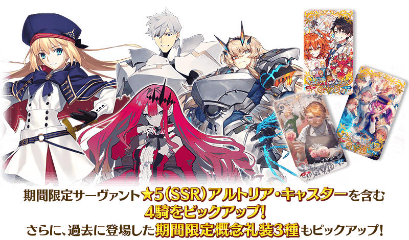 ※本召喚のピックアップ期間中、ストーリーの進行によって追加される下記のサーヴァントは章クリア前でも入手可能です。