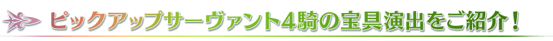 本召喚にてピックアップされている、サーヴァント4騎の宝具演出を紹介いたします! ※「★5(SSR)アルトリア・キャスター」の宝具は再臨段階によって名称と演出が変化いたします。