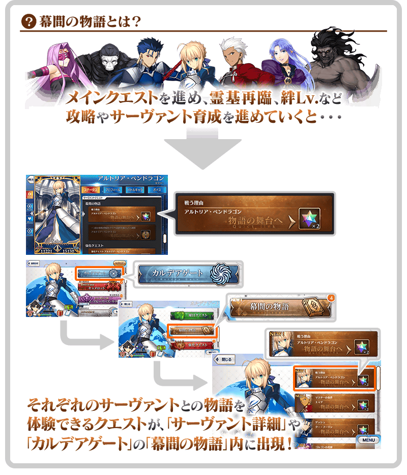 幕間の物語をクリアするとクエストクリア報酬として、聖晶石が入手可能です。